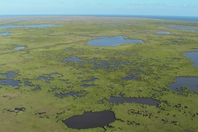 The mighty Mississippi River ends at the Gulf of Mexico in an enormous delta region, covering more than 4,000 square miles of barrier islands, marshes, swamps, and forests. The area’s river channels, bayous, and man-made canals are accessible only by boat. Out on the delta’s marshlands—a sixteen-mile boat ride from the closest marina—a state government agency maintains a permanent facility, staffed by full time agents who monitor hunting, fishing, recreation, and conservation. The site consists of several metal roofed buildings, constructed on 12-foot stilts to stay clear of high water from storm surges. One of the buildings is a 6,000-square-foot residence where the agents reside while on duty.